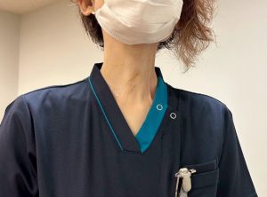 デモンストレーションの際のモデルさんは看護師のスタッフ様で、入院の際にできた気管切開の痕をカバーさせていただきました。
